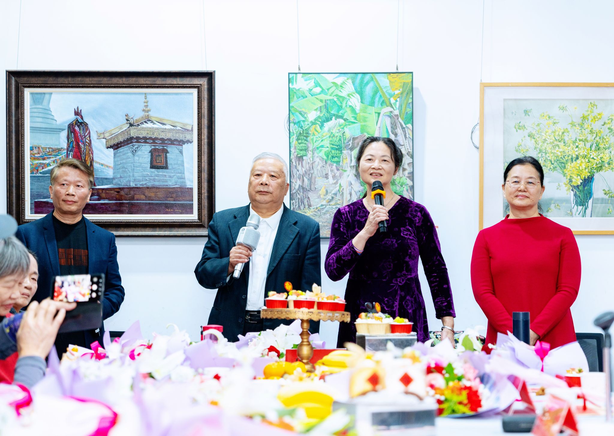 在集体祝寿环节,与会领导为整岁老同志逐一送上慰问信和鲜花,表达生日和节日的祝福。寿星代表、原雕塑系主任项金国教授深情回顾学校的发展,感慨学校在发展中取得的成绩来之不易,感谢学校为老同志们办实事、解难题、谋福祉,作为老同志要发挥银发力量,为学校高质量发展做出应用贡献。会上,校领导与全体与会人员共唱生日祝福歌,为老同志送上生日蛋糕。活动中,老协常务副会长黄小平等老师还精心准备了祝寿节目,生日祝寿现场温馨而热烈。