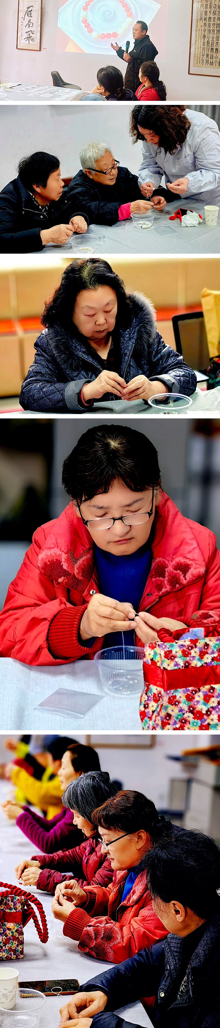 活动伊始,离退休工作处负责人为大家介绍此次活动的具体安排,并邀请来自中国地质大学的专业珠宝鉴定师肖老师为大家详细讲解了串珠的基本技巧、配色方法及成品制作步骤,并现场演示了手链、挂件等小饰品的制作过程。从挑选珠子、搭配色彩到穿针引线、收尾打结,为老师们耐心指导,细致解答大家的疑问。退休教师们热情高涨,一边动手操作,一边交流心得,现场气氛温馨而热烈。